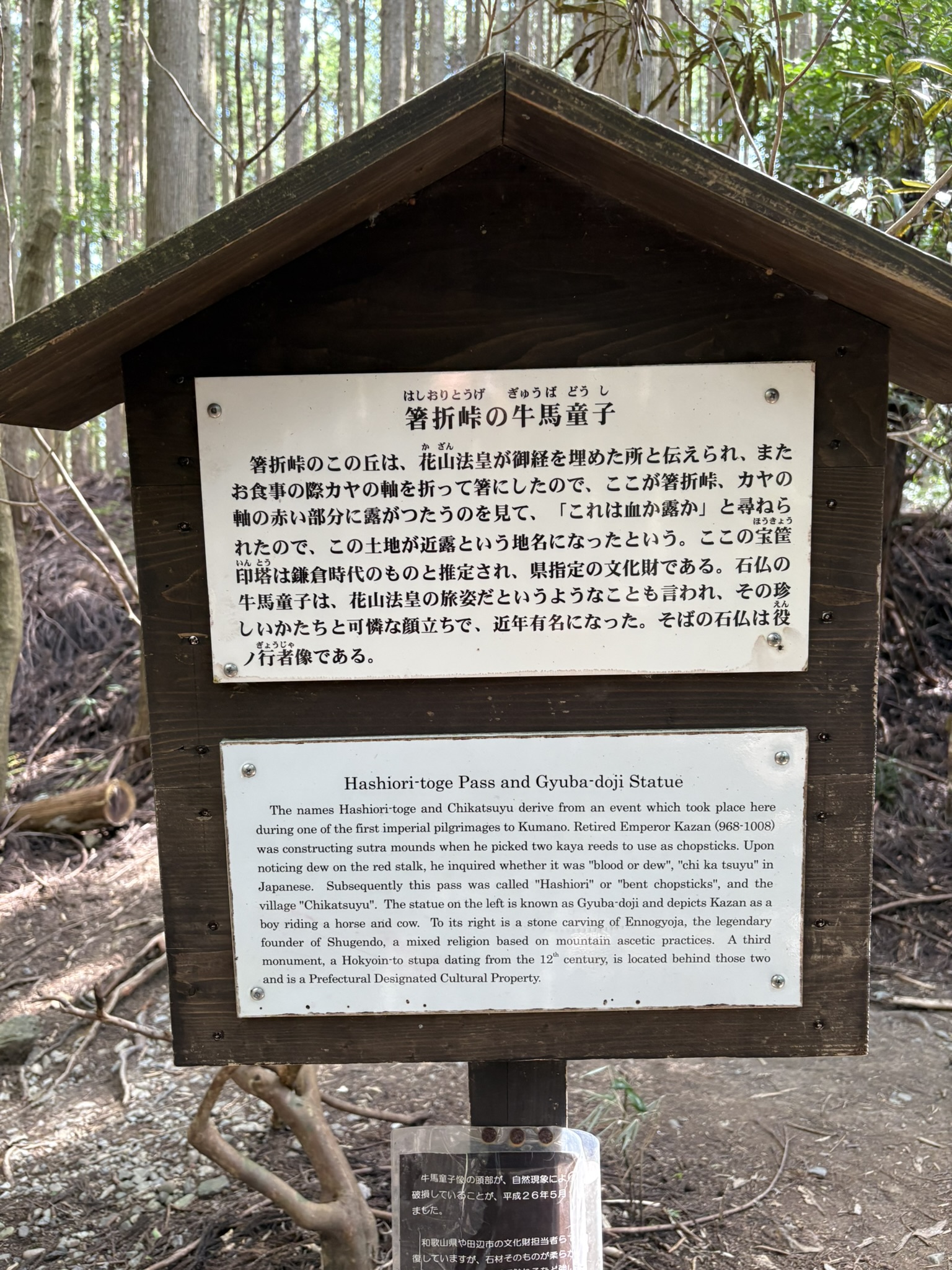 第65代天皇であった花山法皇(968~1008年)が熊野詣を行った際の姿と伝承されている高さ約50cmの像です。